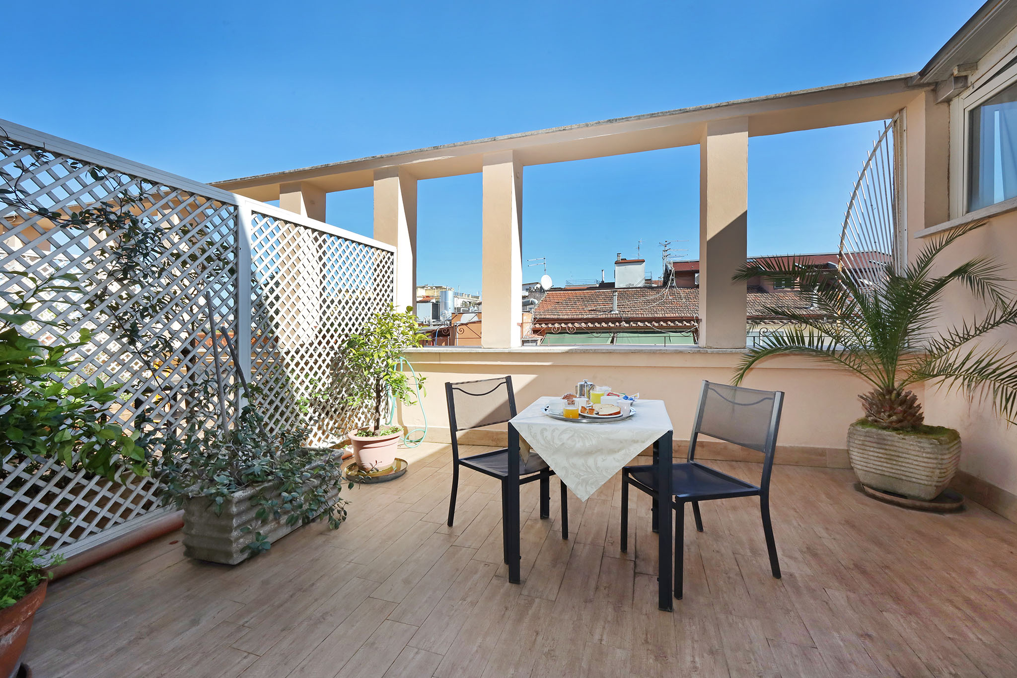 This 3-star hotel in the heart of Rome is easily accessible since the Hotel is near the train station and bus terminal from and to the Fiumicino airport and the Ciampino airport (Ryan Air and other Low Cost airlines) reachable either with special direct trains or Alitalia and Terravision buses (their stops are less than 50 mt. from the Hotel).