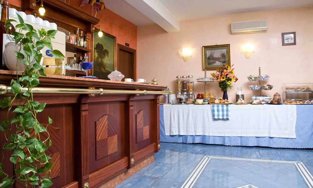 La colazione viene servita nella nostra sala ristorante, un tempo terrazza panoramica con vista sulle cupole della basilica del “sacro cuore” e sui caratteristici tetti di Roma, ed oggi ristrutturata in stile “old-english”, impreziosita con riproduzioni di famosi quadri d’autore e sempre arricchita di freschi e profumati fiori multicolori.